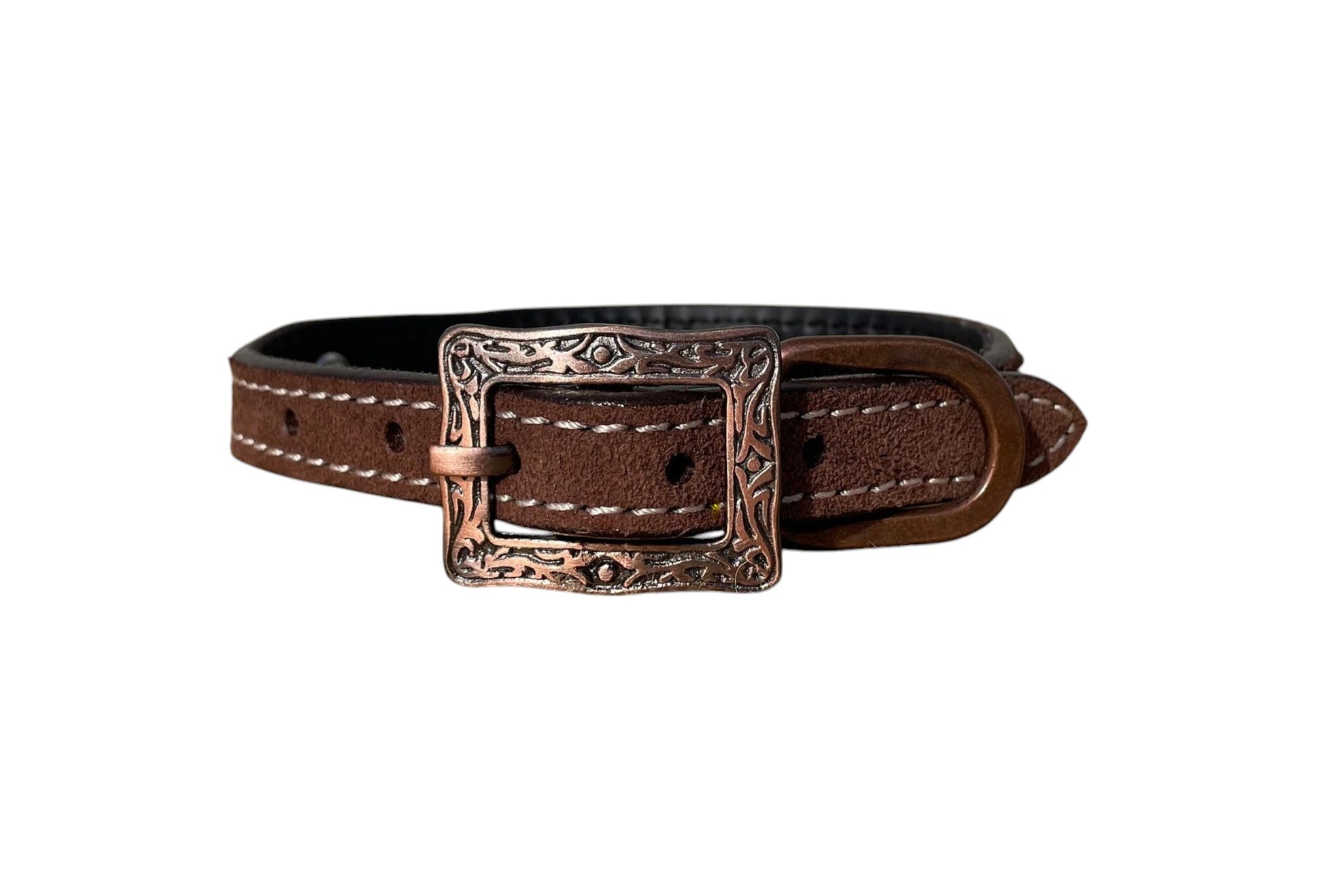 Roughout Leather Dog Collar with Rawhide Stitching and Concho Accents
