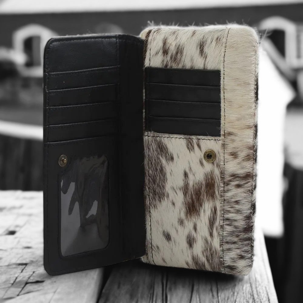 Western Wallet Cowhide Wallet Bifold Myra Wallet - BLACK TONES